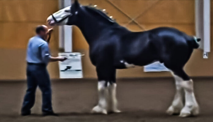 Nowadays Clydesdales are also very capable show horses and perform perfectly well in hitch classes and halter classes. They have also expressed their talent in various equine disciplines such as showjumping, dressage, and many other competitions. One of the most talented horses is also Maine, a beautiful black Clydesdale horse, who at the time that the video was filmed, has its first annual show, and it is very excited about it.