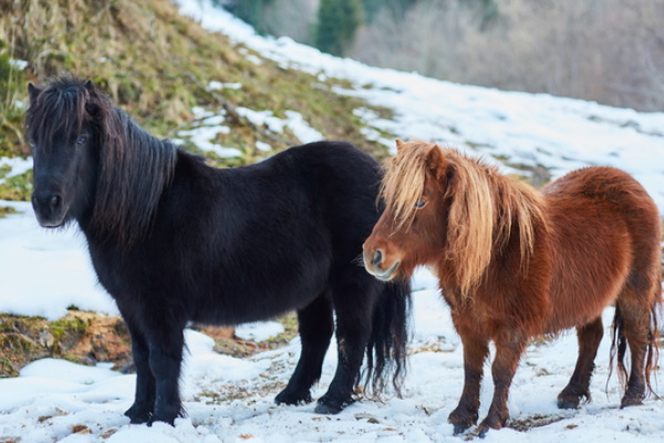 The Shetland Pony is adjusted perfectly to their wild homeland. They even eat the seaweed so they can get nutrients such as minerals to enhance their limited diet. They resist cold weather due to its double coat, which preserves them against the severe winds and cold.