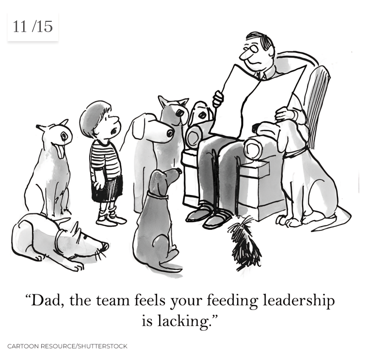 When dad tries to skimp on the food, the dogs are quick to let him know they’re not pleased. This cartoon shows a pack of pups giving dad some serious side-eye, silently demanding more play and treats. Dogs have an unmistakable way of communicating their needs, and their persistence always pays off – especially when food is involved!