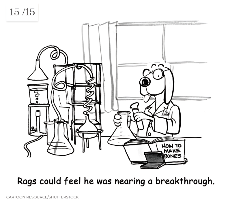 This cartoon shows a determined dog sprinting as if the world depends on it – all for a treat that’s just out of reach. His face says, “Is the treat really worth all this running?” But every dog parent knows that a dedicated pup will go to great lengths to earn that snack, even if it means running back and forth without realizing he’s chasing his own tail.
