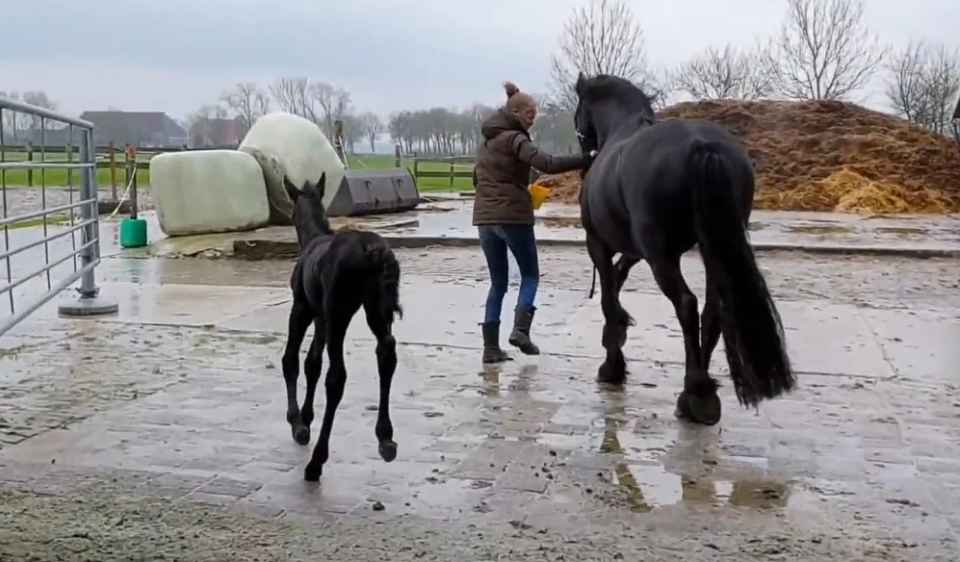 The enchanting world of equines never ceases to amaze us, and the journey of young horses as they learn and grow is especially captivating. Just five days old, Friesian horse filly Mathilde is already making waves as she steps into the inside arena for the first time. The daughter of two champion Friesian horses, Mathilde’s future is filled with promise and adventure. In this article, we delve into her first experiences in the indoor arena and the significance of these early days for her development. Born into a lineage of champion Friesian horses, Mathilde’s pedigree boasts an impressive combination of strength, grace, and elegance. Her sire, a world-renowned Friesian stallion, and her dam, a decorated mare, have both excelled in various equestrian disciplines. Mathilde’s birth has been highly anticipated, and with her arrival, great expectations have been placed on her tiny shoulders.