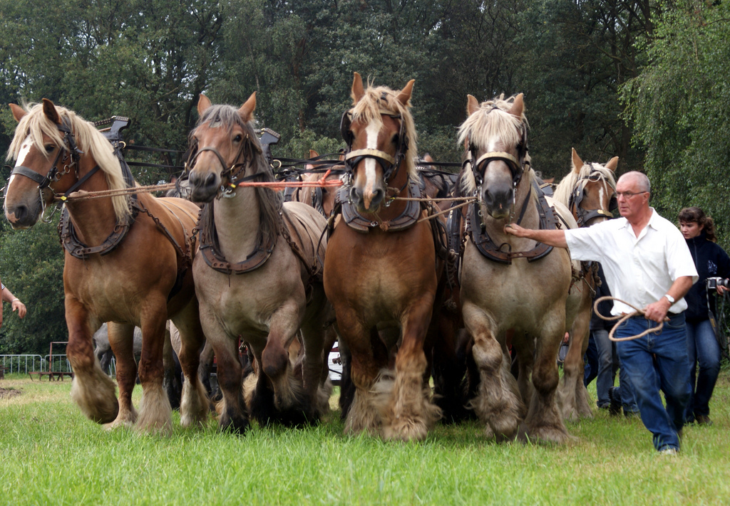 Belgians are usually known for their power in pulling competitions, but that isn’t the only contest where this draft horse shines. Harness classes and plowing classes are also frequent entries from the Belgian breed. Many open exhibits will also see at least a few Belgian entries to fight with the lighter horses. Talented Belgians will also compete in dressage and in pleasure driving classes.
