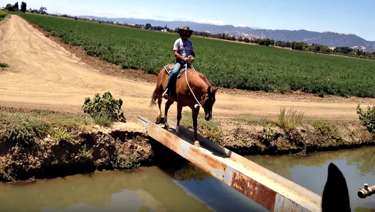 People think that when they are riding out and they see an obstacle they want to have a challenge and help their horse grow. The bridge in this video is really narrow and made of pieces of metal and when you walk on it with a horse there is danger and few people are willing to take the risk. Every time you get your horse to face his fear and move past it, your horse and you become better.
