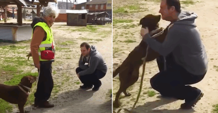 The remarkable nature of this reunion is captured in a heartwarming video that demonstrates the undeniable power of scent-related memory and recognition. Initially, as the owner approaches, the dog exhibits caution, unsure of the man who stands before him. This moment of uncertainty is palpable, highlighting the tension between past familiarity and present estrangement. However, this hesitation is swiftly overcome by the dog’s innate ability to discern and remember the unique scent of its owner. With just one tentative sniff, the dog recognizes the man, bridging a three-year gap with a single olfactory cue. This pivotal moment ignites a joyful realization: the man is not a stranger but the dog’s long-awaited companion.