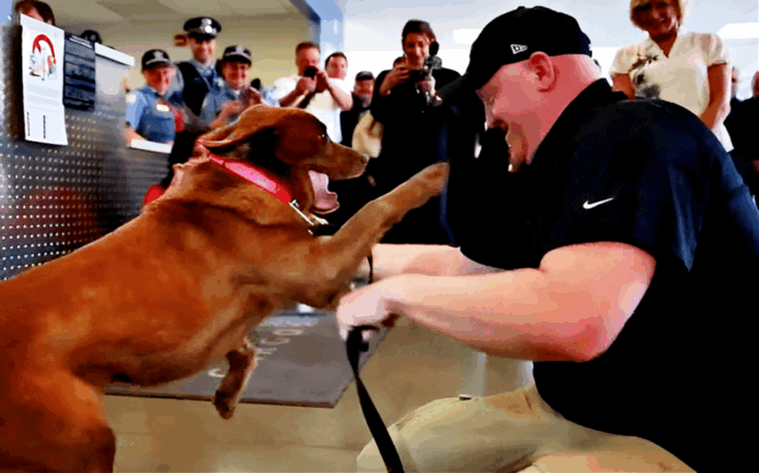 This unique connection paved the way for a team that would go on to complete over 100 missions in Iraq, searching for roadside bombs and hidden weapon caches. But their duties weren’t confined to the battlefield. Bos and Cila also took part in high-profile missions, including security details for the President and Vice President, the Democratic National Convention, and the United Nations General Assembly. When not on duty, their bond deepened through play and companionship, highlighting the profound connection that had formed between them. However, in 2012, their journey took a heartbreaking turn when Bos suffered a back injury, leading to their separation. Cila was reassigned, and Bos returned home to Michigan, uncertain if he would ever see his loyal companion again. The pain of their separation was palpable, with Bos admitting to emotional struggles during their time apart.