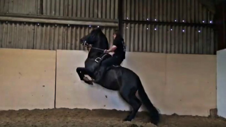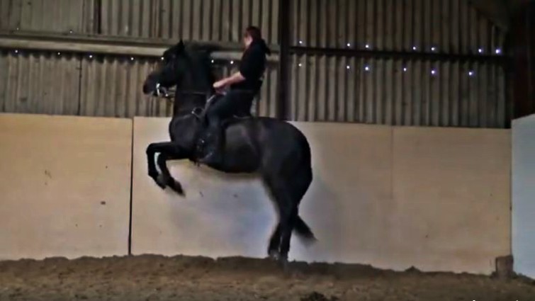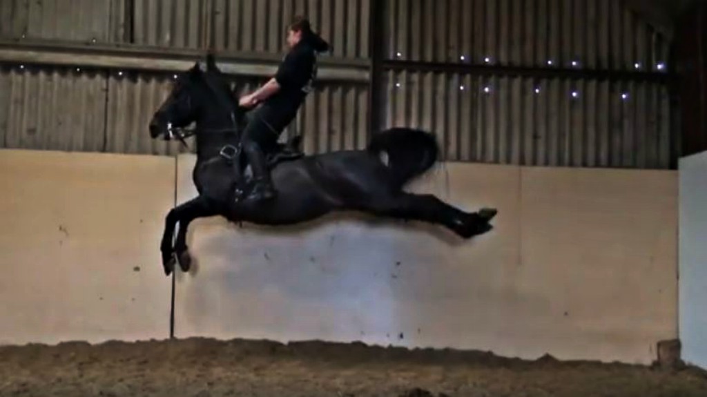 Horses are normally trained each air on the long rein without a rider, which is less exhausting for the animal. Still, each step is meant to ultimately be performed under a rider. In the video shown below, you will see an incredible black horse that jumps so high, it looks just like he is flying in the air!