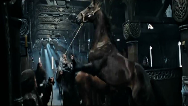 Today we have decided to show you one of the most beautiful scenes, that I’m pretty sure all horse lovers will appreciate. It features Brego, a bay horse with a white star on his forehead and white showings on his legs. It is believed that Brego was drawn back to Rohan by those riding with Éomer when he went to save his cousin.