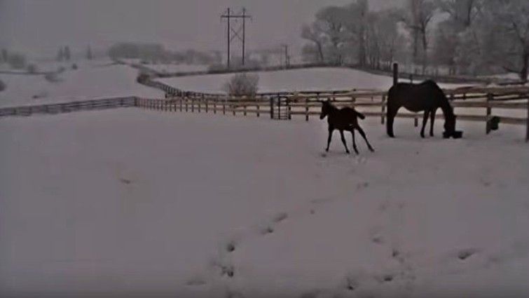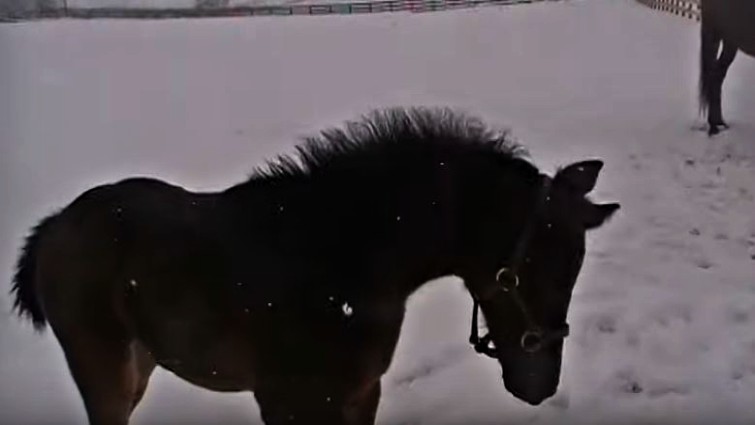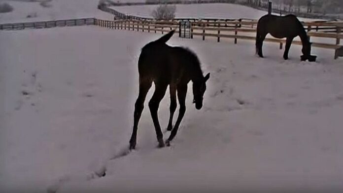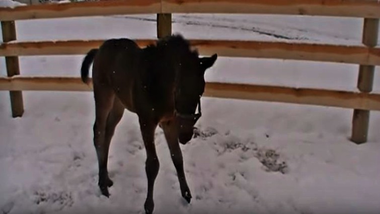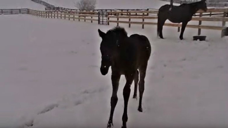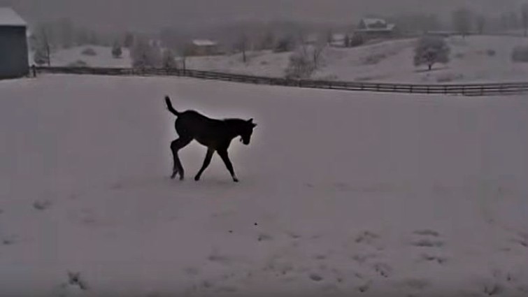 Amusing Video Of Baby Horse Playing And Farting In Snow
