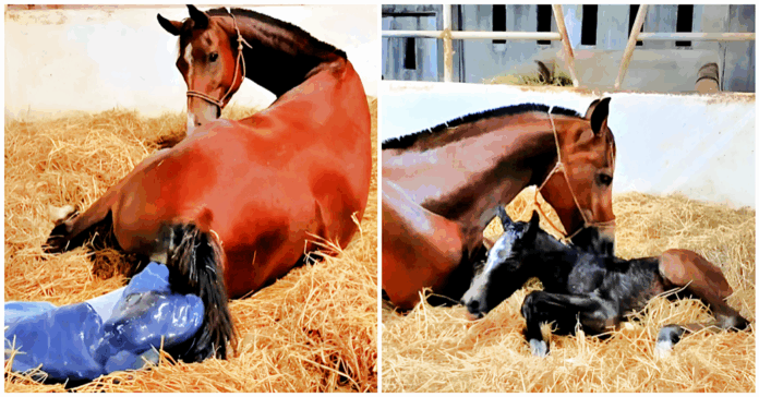 In a captivating video, viewers are treated to the natural and beautiful event of a mare giving birth, witnessing the grace of Isabella, an Arabian mare, as she brings her foal, Hermes, into the world. This scene, untouched by human intervention, showcases nature in its purest form. The video captures every delicate moment as Isabella, undisturbed, fulfills the timeless ritual that wild horses like majestic mustangs have perfected over centuries. This event is not just a display of birth but a profound glimpse into the power and delicacy of natural life processes, underscoring the awe-inspiring capabilities of these magnificent creatures.