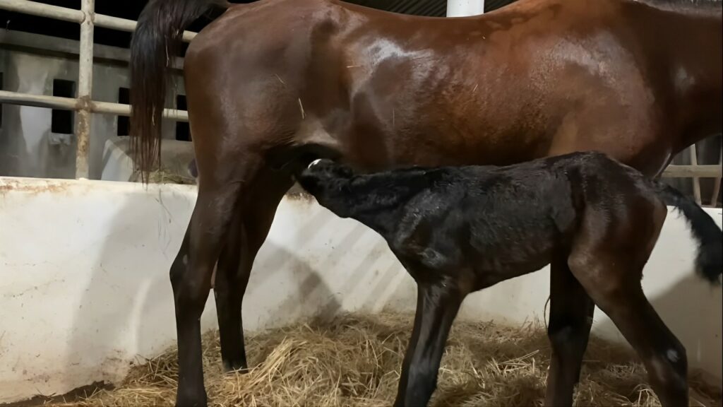 The scene highlights the innate wisdom and strength of horses. As Isabella introduces Hermes to the world, their first interactions are vital—the imprinting of scents, the tender first nuzzles—which establish a deep, indelible bond between mother and foal. This bond, critical to the survival and emotional development of the newborn, is formed in the quiet sanctity of their natural environment. The video not only celebrates these moments but also respects them, advocating for minimal human interference to allow these first, crucial bonds to form uninterrupted, thereby preserving a beautiful tradition of natural equine behavior.
