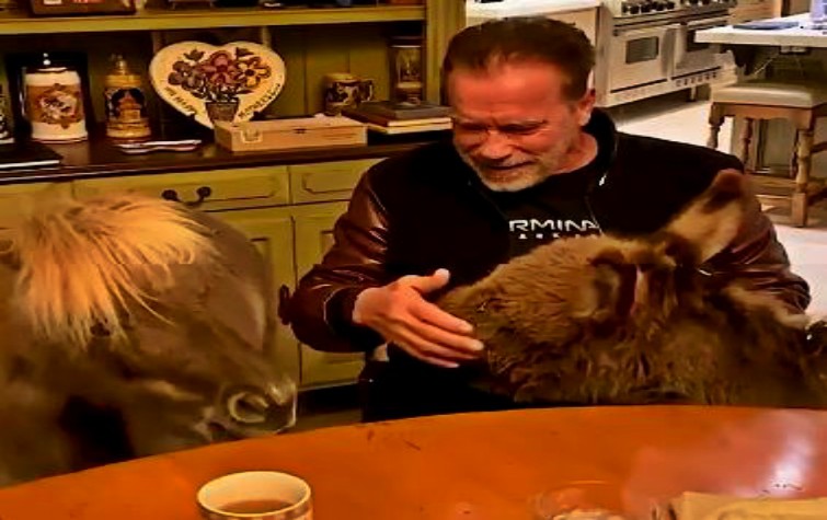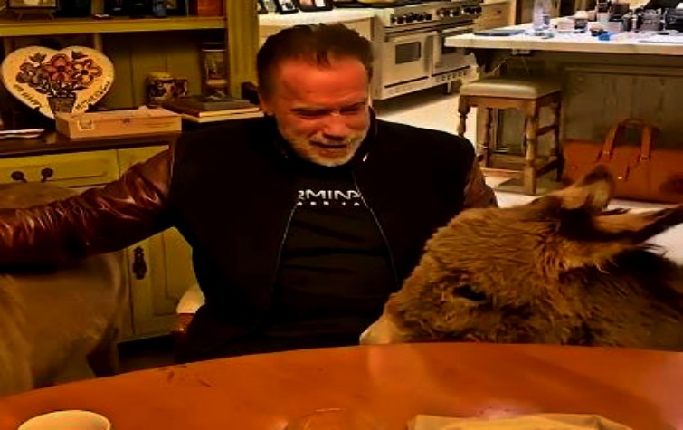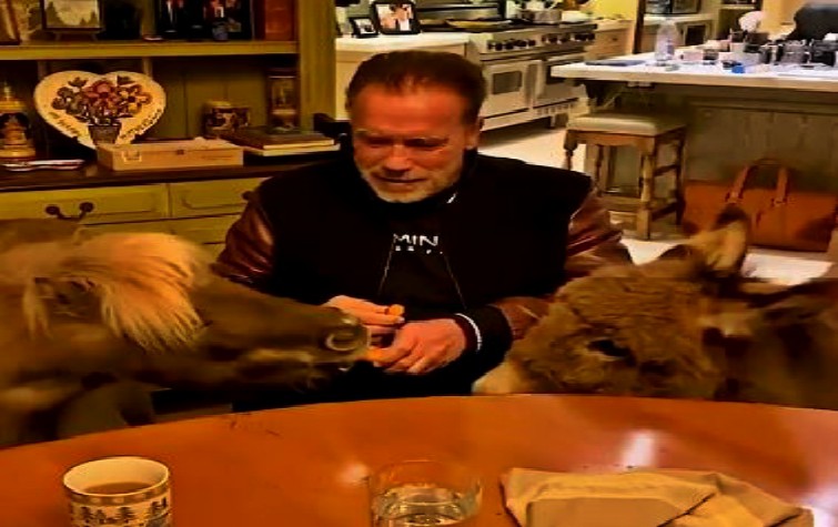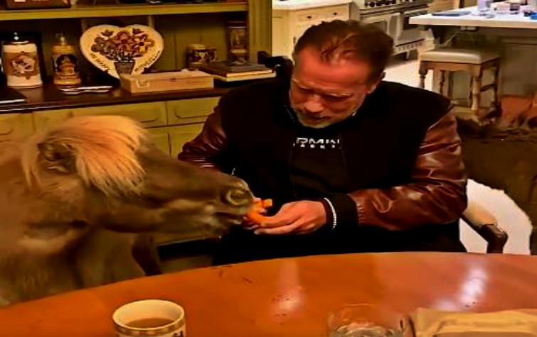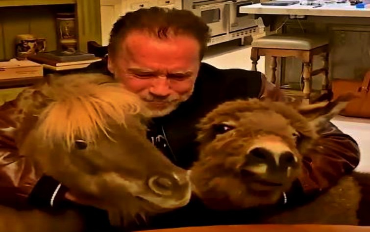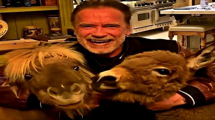 He was accompanied throughout the video by his pony Whisky and his miniature donkey Lulu. “We don’t go to restaurants, we don’t go to anything like that anymore here,” he said. See, the important thing is you stay at home,” Schwarzenegger stated while he fed carrots to his little equine buddies, “because there is a lockout now.