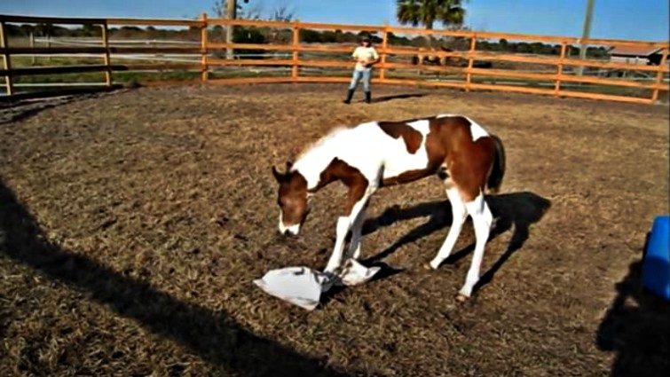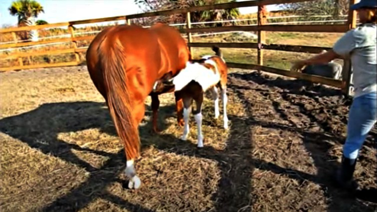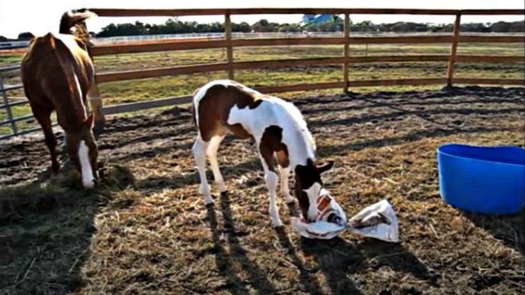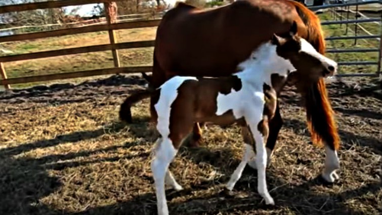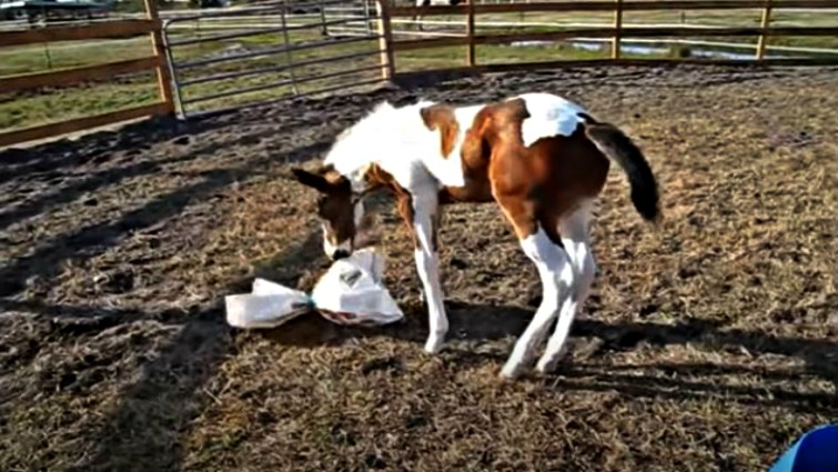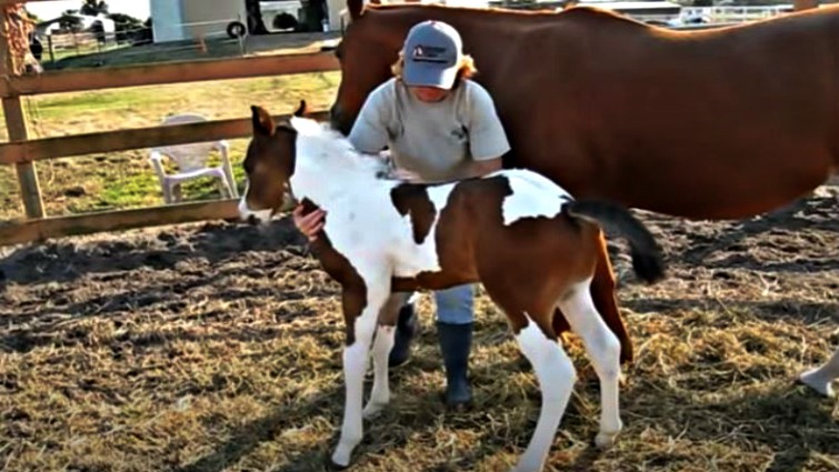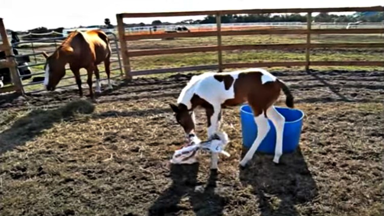 In the video shown below, you will be presented to Zip, an adorable Paint foal who is not afraid to play and have fun despite being only 2-weeks-old when the video was recorded. The beautiful foal was staying with her mother when suddenly Jackie went near him and threw some water on his back.