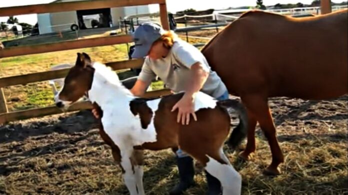 In the video shown below, you will be presented to Zip, an adorable Paint foal who is not afraid to play and have fun despite being only 2-weeks-old when the video was recorded. The beautiful foal was staying with her mother when suddenly Jackie went near him and threw some water on his back.