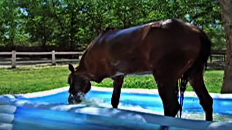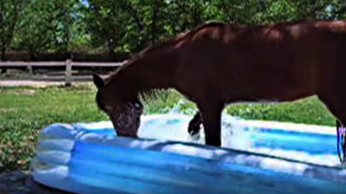 Naturally, this makes it nearly irresistible for animal friends not to get in on the fun, too. Just look at the horse in the video below to get an idea of what I mean. A family’s horse approached an inflatable kiddie pool barely large enough for him to stand halfway inside it and began kicking up water. “What are you doing, Duke?” as a reasonably confused father while his child giggles were off-screen.