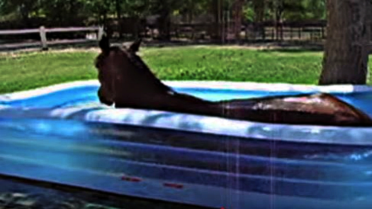 The commentary while all of this is happening is almost as fun as a massive horse splashing around like the puppy dog in this video. But that doesn’t stop him from taking a load off and decides that his owners have the right idea with this whole pool thing.
