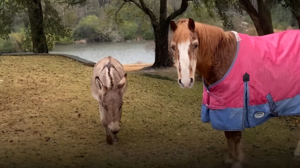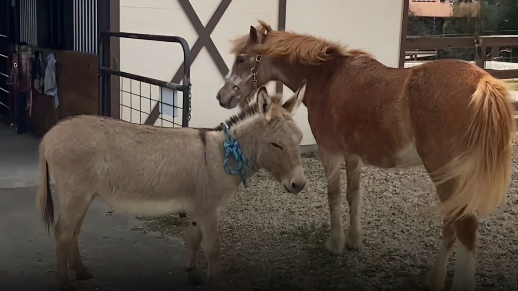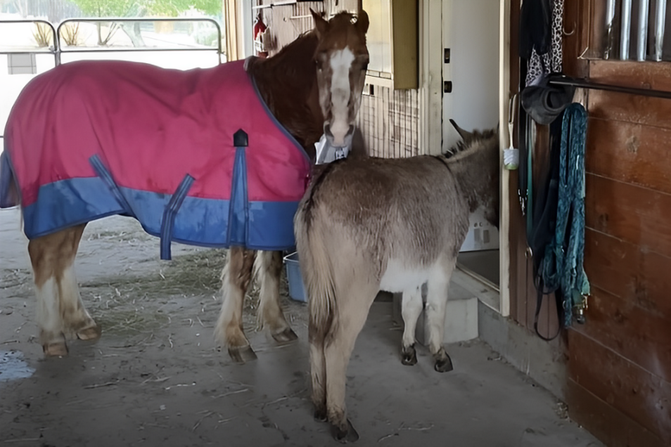 At the Misfit Zoo, a sanctuary for rescued animals, an unusual friendship blossomed between a mini donkey named Eeyore and a 33-year-old blind pony named Gidget. The duo was set up on what could be described as a “blind date,” arranged by their caretaker Ana after both animals recently lost their long-time companions to cancer. The connection was immediate and profound. Eeyore and Gidget quickly became inseparable, providing each other with companionship and comfort during a time of shared grief.