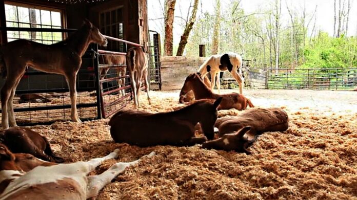 If it weren’t for the fact that we’re here, all these foals would be dead.” As Goss speaks, the camera draws back to reveal a team of baby horses, all wobbling on too-long legs and knobby, weak knees. They’re so young, and it’s truly unthinkable to even imagine them being tossed aside so carelessly — all in the name of producing more future racehorses.