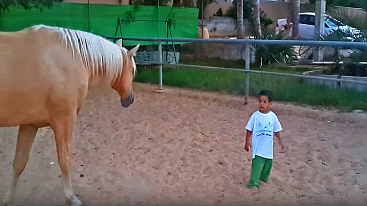 They are very loving and affectionate and very cordial, enjoying the attention, but often do not know how to connect. The video shows the boy made initial contact with the horse and how the horse responds to the child’s curiosity with some concern but nevertheless contains it and get used to the speed and the natural movements of the child. The child seems excited about the meeting and the horse allows the child to cuddle. The horse went specifically to the child even though I was there, and he was not interested in me at all.