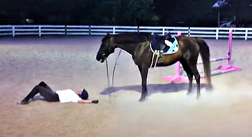 At the time the video below was shooted, the rider had been with this horse, named Jasper for 9 years. He has a hurt stifle, which is why he kicked out over the jump. Although Jasper bucked off his rider, he felt bad for what he did so he decided to apologize to her. Watch the video to see his reaction!