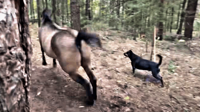 Cocky Horse Kicks Tree And Farts On Dog Before Running Away