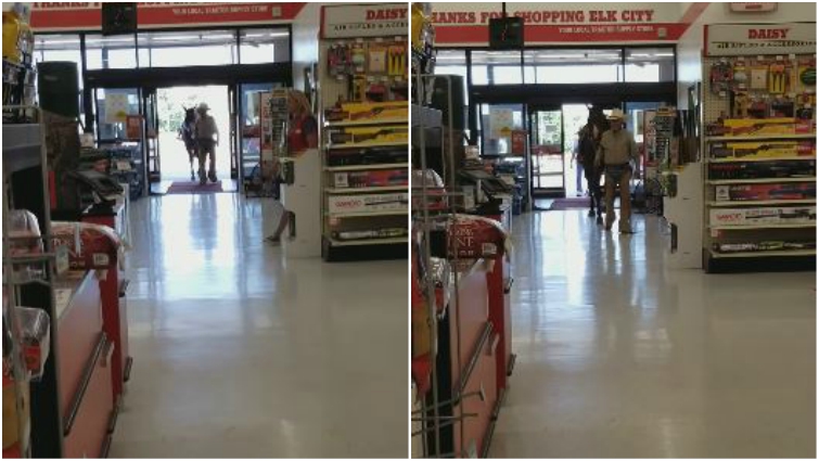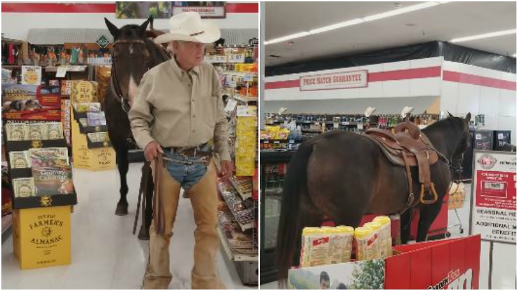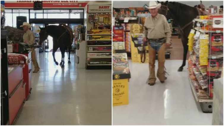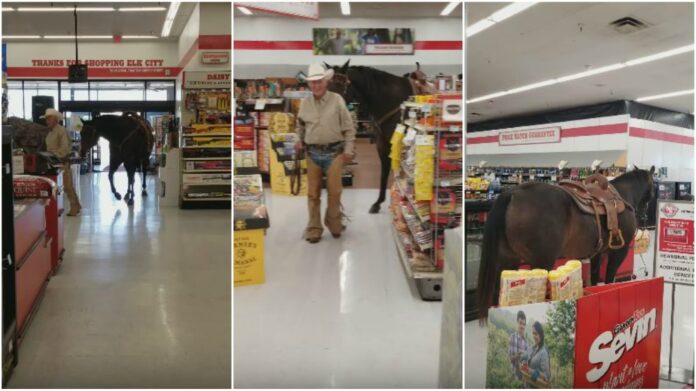 A cowboy needed to buy some feed for his horse, but he had his four-legged companion in tow, and he didn’t want to just leave the horse tied up outside. So the elderly man headed into Tractor Supply in Elk City, Oklahoma, and approached the staff with an important question.