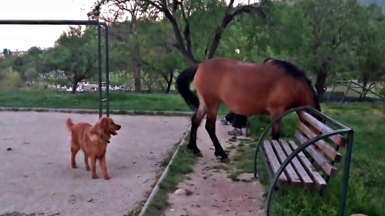 It barely happens that a dog and a horse do not create a friendship after being together for a long time in the barn. Regarding the video that you will watch, the situation is a little different. This dog was very interested when he was introduced to two horses for the first time. Although the horses are not interested in playing with him, he really tries his best to run around and drum up interspecies playtime fun.