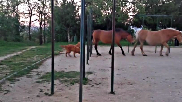 It reminds me of the baby donkey who got close to a lot of horses but all of them were afraid of him because he looked different from them, however, the situation here does not seem to be as serious. I am pretty sure that after spending a lot of time together, these animals will become really good friends. I mean, it is the duo that people love the most on the internet so they better be. Please have a look at the video below and let us know what you think about it.