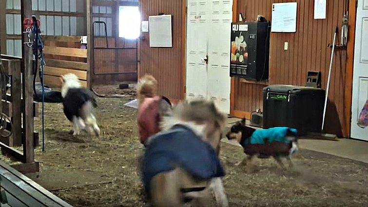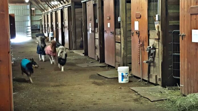 The dog is the only one of its king in the group, however, he decides to join this beautiful group of mini horses and he seems to be very welcomed.  There’s a lot of sprinting around in circles, trying to use up all of that canine energy.
