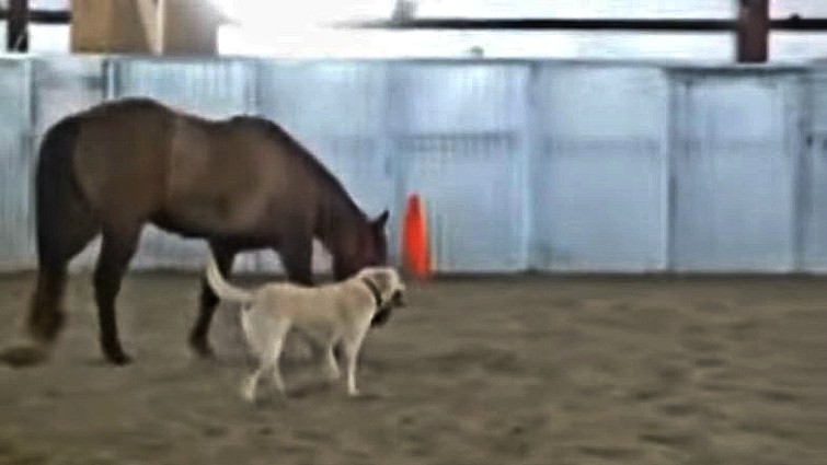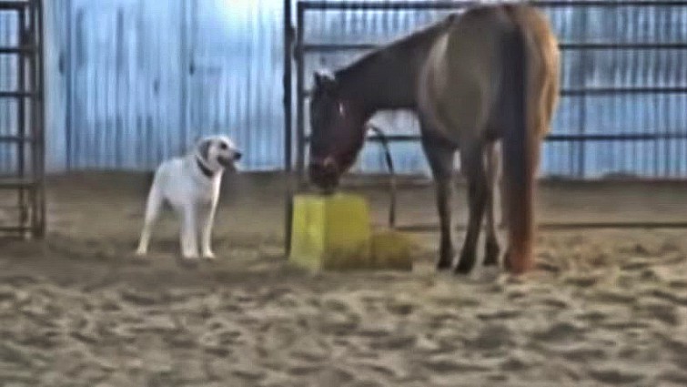 It might be surprising, but they can feel what their animal friends have been through and help them get through the tough situations in life. Furthermore, they can get their lazy animal friends moving and cheer them up. Meet Annie, a young quarter horse mare and her friend Cookie, a white lab. These two unlikely friends love nothing more than playing together in the paddock.