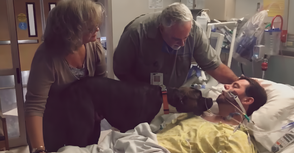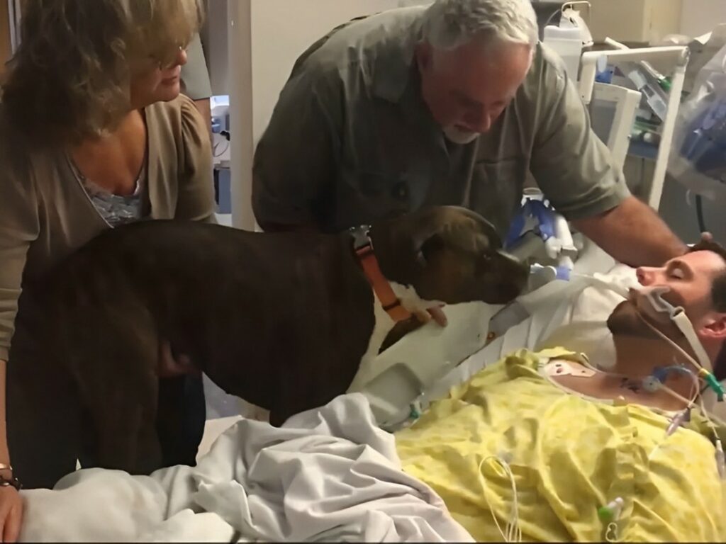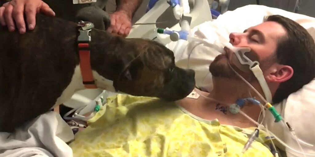 In the quiet halls of Rideout Memorial Hospital in Marysville, California, a family faced the heart-wrenching task of saying goodbye to Ryan Jessen, a 33-year-old man who lay dying from a ventricular brain hemorrhage. Amid the sorrow, a touching moment unfolded that would capture the hearts of millions: the final meeting between Jessen and his beloved dog, Mollie. Six years prior, Jessen’s life was forever changed when he stumbled upon a “little flea-bitten puppy” while walking in a cemetery near his parents’ home in Sutter, California. The stray, who would come to be known as Mollie, formed an inseparable bond with Jessen, becoming much more than a pet; she became a cherished companion.