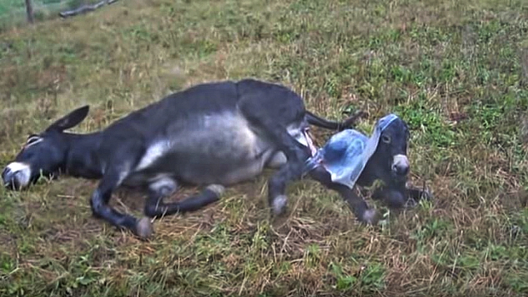 In the clip below, a donkey goes into labor. The mother, undoubtedly in pain, collapses to the ground and pushes with all her might. First, the little donkey’s legs appear and right after, although being very exhausted, the mother donkey pushes one more time and the little baby comes out and immediately goes around the place.
