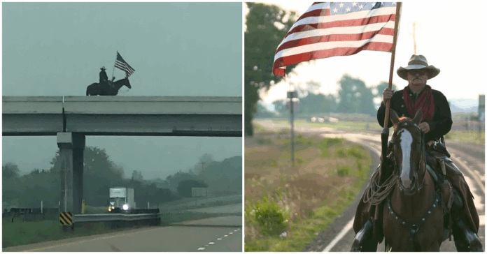 For nearly a decade, Clint Sparks has made it his mission to brighten the mornings of strangers in the most unique way. Every Sunday, this 65-year-old cowboy saddles up his horse, Dakota, and rides to the center of a Palmer, Texas, overpass. Clad in classic cowboy attire, Sparks waves an American flag with pride, offering a friendly smile to every passing vehicle. His goal is simple yet profound: to spread joy and positivity to as many people as possible.