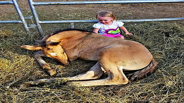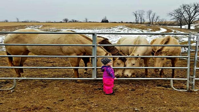 Touched by her little angel, Ashley did not forget to record this beautiful moment on her camera. The mother thought that it was typical for kids her age that they were curious about everything and always wanted to explore new things like Aubrey did. However, now Aubrey has already turned three and she is still helping her mother taking care of their calves and horses!