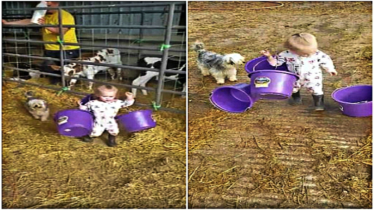 Aubrey Koeller, Ashley’s little daughter was only 21 months old when she decided to lend a helping hand to her busy mother. In spite of her tiny frame, the toddler was determined to carry multiple buckets at once! With all her strength, Aubrey helped her mother with day-to-day chores at the farm ever since.
