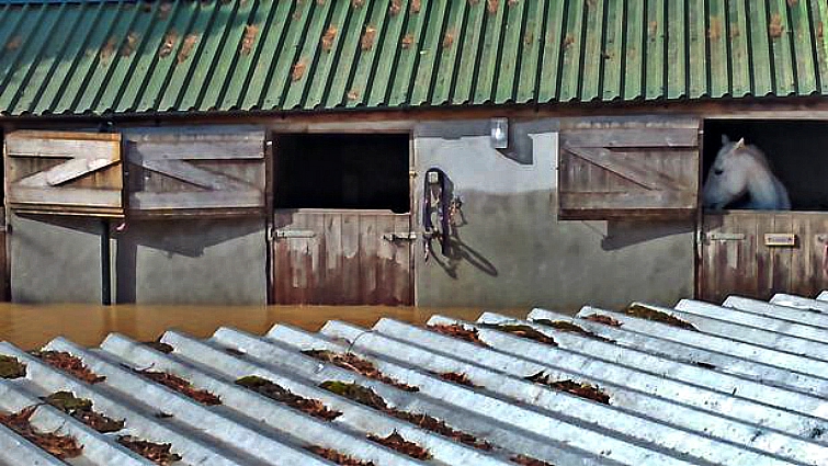 “The horses stayed calm but they couldn’t move – they were trapped in the stables because there was so much water. The owners arrived and were very worried about their horses – they couldn’t do anything,” said Jean. “We checked the CCTV and the flooding started at 12.30am so the horses had been standing in water for 10 hours in total. The vet attended and one has a chest infection and another is lame but they are expected to make a full recovery.”