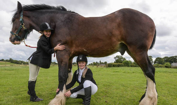 The six-year-old Shire horse measures just under 21 hands from his hoof to the withers at the bottom of his neck, the equivalent of just under 7 ft but the top of his head stands a staggering 10ft above the ground.