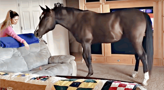 In today’s video, we will show you a beautiful horse getting inside the house to chill with the owner. As you can see from the video, the horse just takes a look around and seems to be very calm. Why not getting inside? Horses deserve some quality time as well. Such a lovely horse. Have a look at the video below for more, let us know your thoughts on the video, and please share the video with your loved ones in order to make their day beautiful as well.