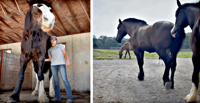 Horses are social creatures, often creating lasting bonds with their herd members. At the Gentle Giants Draft Horse Rescue, a heartwarming friendship blossomed between a gentle giant named Phantom and a neglected, elderly horse called Teton. This tale of companionship and healing demonstrates how the power of friendship can change lives for the better. Phantom is a 7-year-old draft horse who stands an impressive 7 feet tall at his withers, and around 8 feet tall when his head is considered. Weighing approximately 2,000 lbs, one might expect this massive horse to be intimidating. However, Phantom is quite the opposite. His carers at the rescue fondly refer to him as a “puppy” and compare him to a Great Dane due to his affectionate, friendly, and playful nature.