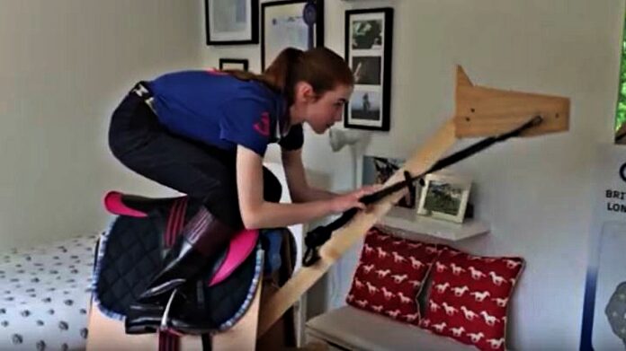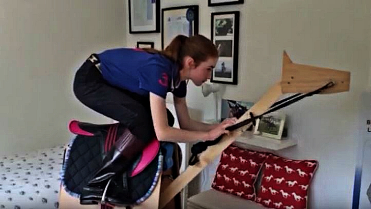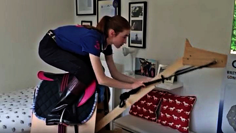 With the nearest training yard a four-hour-round drive away, doting dad Paul decided to build his daughter a horse so she could practice her technique without leaving her bedroom. He spent a month constructing the wooden beast – nicknamed Troy – with wooden beams and nails from his local B&Q.