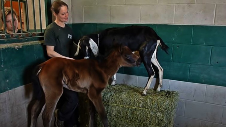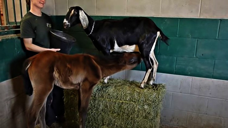 The only way for these foals to survive and stay healthy is if they find a nurse mare who can take care of them, feed them, and give them all the attention they need as they grow up. There are many occasions where orphaned foals are adopted by a mare and nowadays it is considered something very common but today we are going to show you an unusual video that shows a goat feeding a foal.