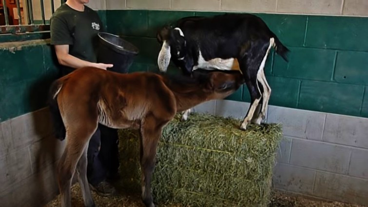The most important thing it’s that their milk contains less lactose, and is very nutritious, exactly what the foal needs during the first stage of her life. Furthermore, goats can be great companions for foals and it’s cheaper to get a goat than a foster mare. As you can see in the video, the practice has demonstrated that goats are able to nurse a foal successfully. Watch the video below for more!