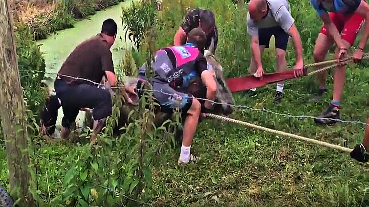 A group of cyclists in France saw it from far away but, when they got a bit closer they saw what it was: a horse that was surely about to die. The horse was stuck for a long time and it was getting weaker and weaker as time passed by.
