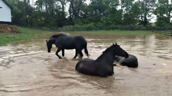 High temperatures also make the horse exert himself in play as the horse understands that water cools him off. Maybe the horses in the video are both cooling off and having a great time in the water. Who would have a great time playing in and splashing the water when it is really hot?! Thee gorgeous horses do know how entertain themselves. This will make your day! Watch and enjoy!