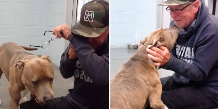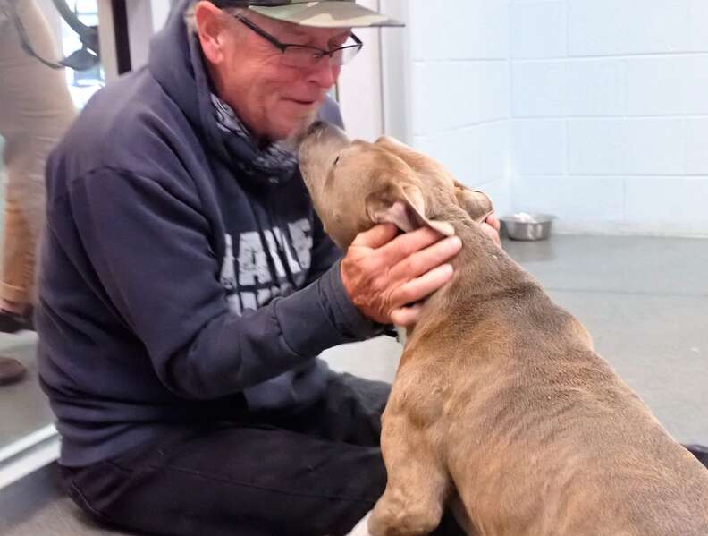 In early April, a heartwarming tale unfolded at the Washington County Animal Shelter when a stray dog named Blue sought refuge at a stranger’s doorstep, leading to his rescue by an animal control officer. Blue, a pit bull mix, was immediately taken to the shelter, where his friendly and affectionate demeanor quickly won over the hearts of the staff. Despite his initial shyness and unease around other dogs, Blue’s love for humans shone through. “He was a happy-go-lucky dog,” recounted Tammy Davis, the shelter’s executive director, highlighting his affectionate nature towards people. This touching story begins with Blue’s uncertain journey on the streets, setting the stage for an extraordinary reunion that was yet to come.