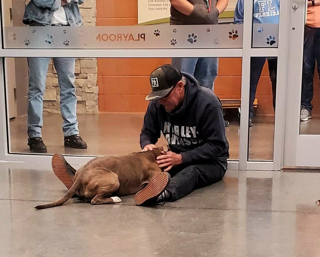 The video of Blue playing quickly garnered attention, but one comment stood out among the rest: “That’s my dog.” The claim came from a man in Tennessee who had lost Blue six months prior and had since moved to Texas for work, fearing he would never see his beloved pet again. The shelter was skeptical at first, needing to confirm the man’s claim. The proof was undeniable when the man provided photos of Blue with his favorite blue squeaky ball, matching the toy seen in the shelter’s video. This remarkable coincidence confirmed the man’s ownership, paving the way for an emotional reunion. Blue’s dad embarked on a 1,200-mile journey back to the shelter, eager to reunite with his long-lost companion.