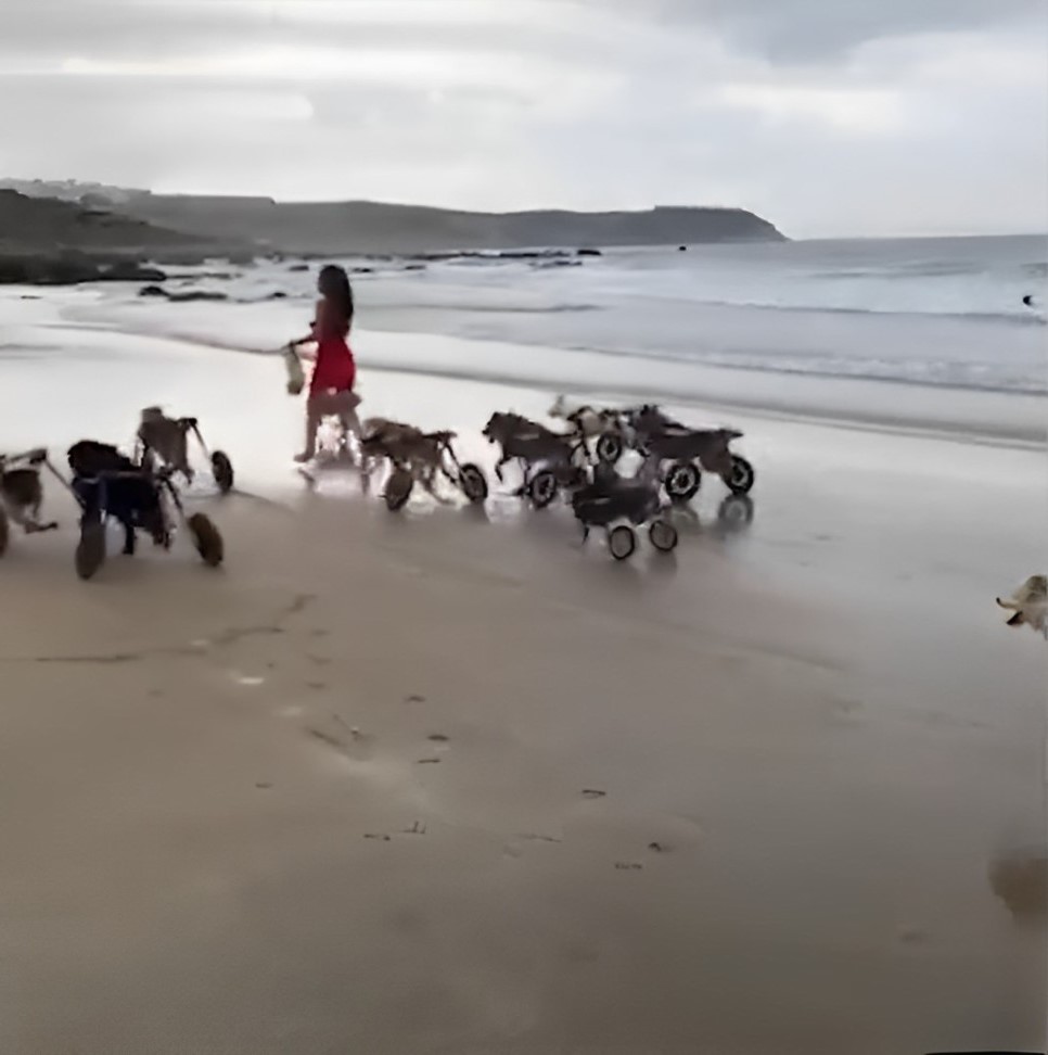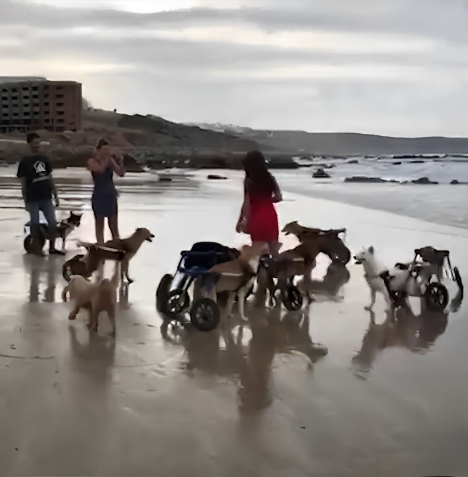 Woman Brings 18 Disabled Dogs To Beach Delivering A Heartwarming Scene When They Start Running