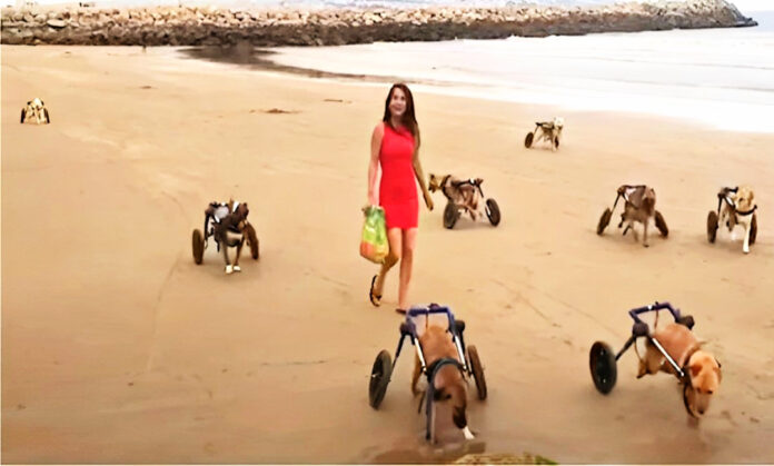 Woman Brings 18 Disabled Dogs To Beach Delivering A Heartwarming Scene When They Start Running