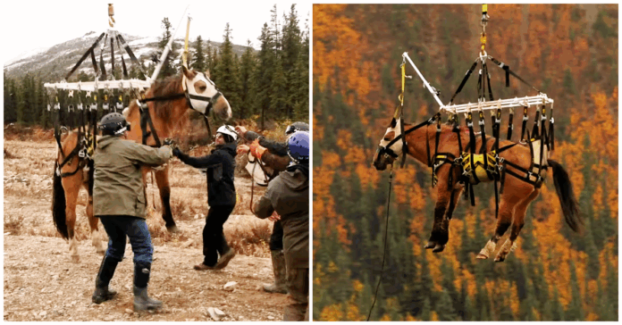 The image of Lucky, suspended in the air and transported across the sky, was both surreal and awe-inspiring. Despite the precariousness of his situation, Lucky appeared calm, perhaps even curious, as he gazed out at the horizon. This extraordinary scene was a poignant reminder of his bravery and the unusual yet profound connection that had formed between him and his rescuers. It’s rare to see a horse flying through the sky, and yet there was Lucky, embodying the spirit of survival and the trust he placed in the humans fighting to save him.