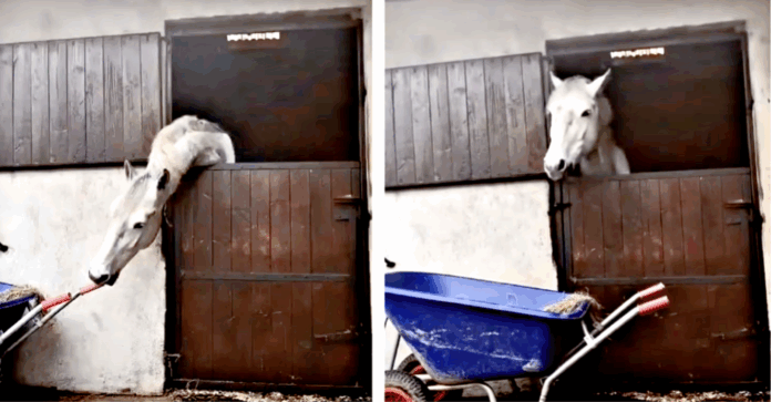 That’s what the following video is all about. Nothing can stop this intelligent horse from food. As you can see from the video, the hungry horse finds a way to get food from himself. Well, the owner definitely needs to keep an eye on this funny intelligent horse. He seems to be smart enough to solve problems he might be facing. This video made my day for sure. Please watch the video below for more, leave a comment on the video, and do not hesitate to share the video with your friends and family in order to make them laugh as well.