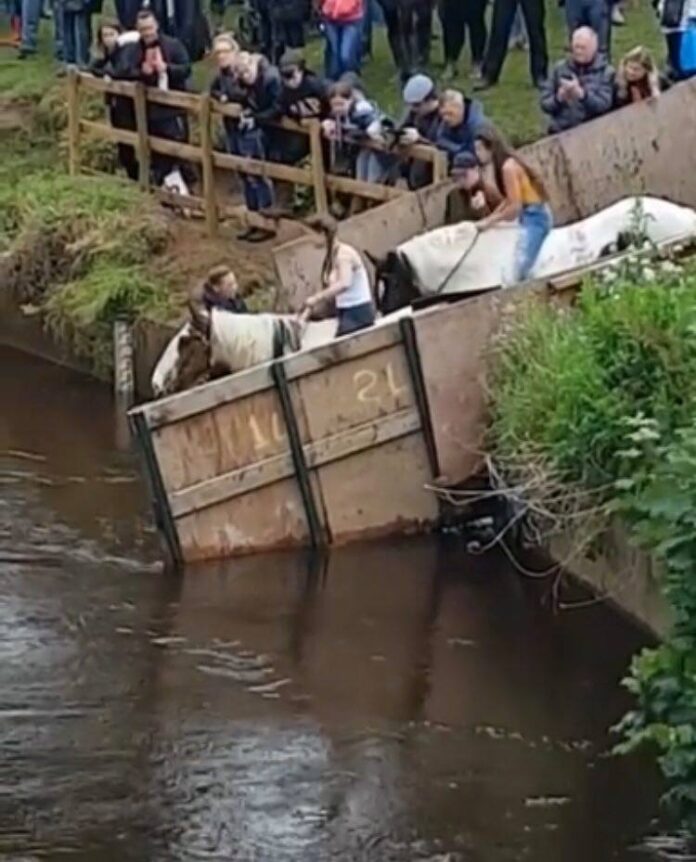 In the video below, you will be able to see two horses who both show the fear they have in different ways. They are close to jumping in a water place, however, they react completely differently. The first one touches the water first and then when he sees that there is no problem entering, he, together with his rider, get in together. The second horse seemed to be more confident after he saw his friend jumping in so he immediately jumped after his friend from a long distance and at the same time, his rider fell as it was unexpected. Please have a look at the video below and let us know what you think about this situation, given the fact that a lot of people were not happy with what happened.